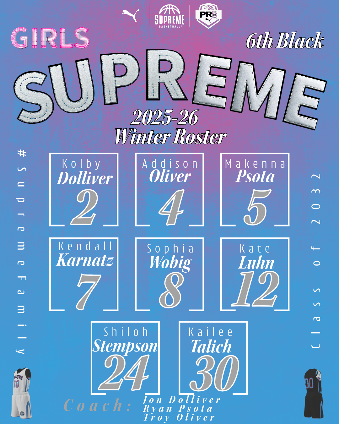 Supreme Girls Basketball teams compete during our Fall/Winter season in both the CYBL and independent tournaments. This program is focused on players grades 4th-8th at all skill levels that live in Southeast Nebraska communities.